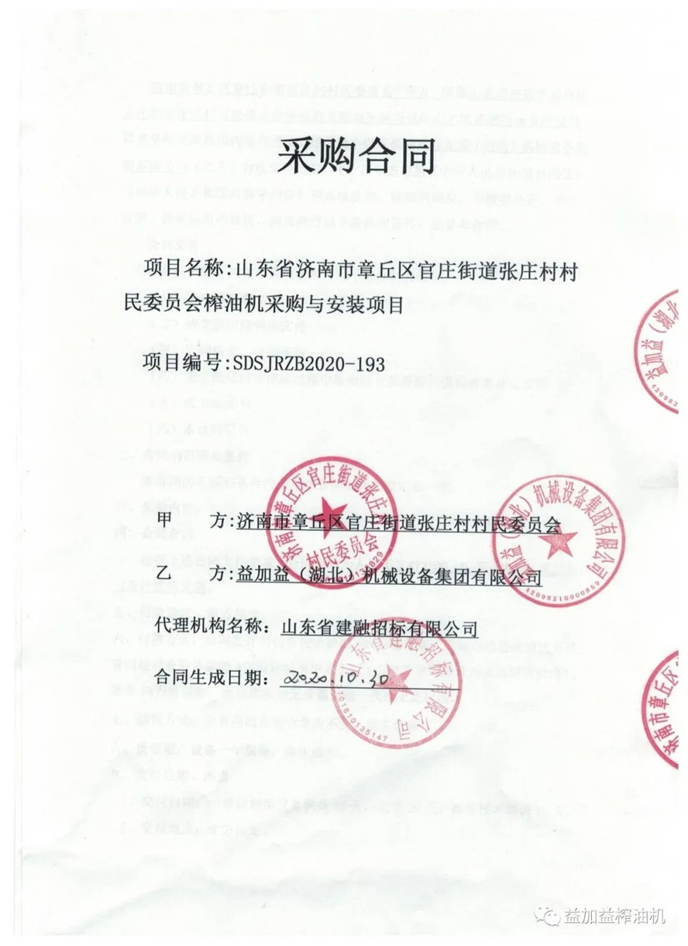 金秋益加益集團又中標政府采購榨油機項目